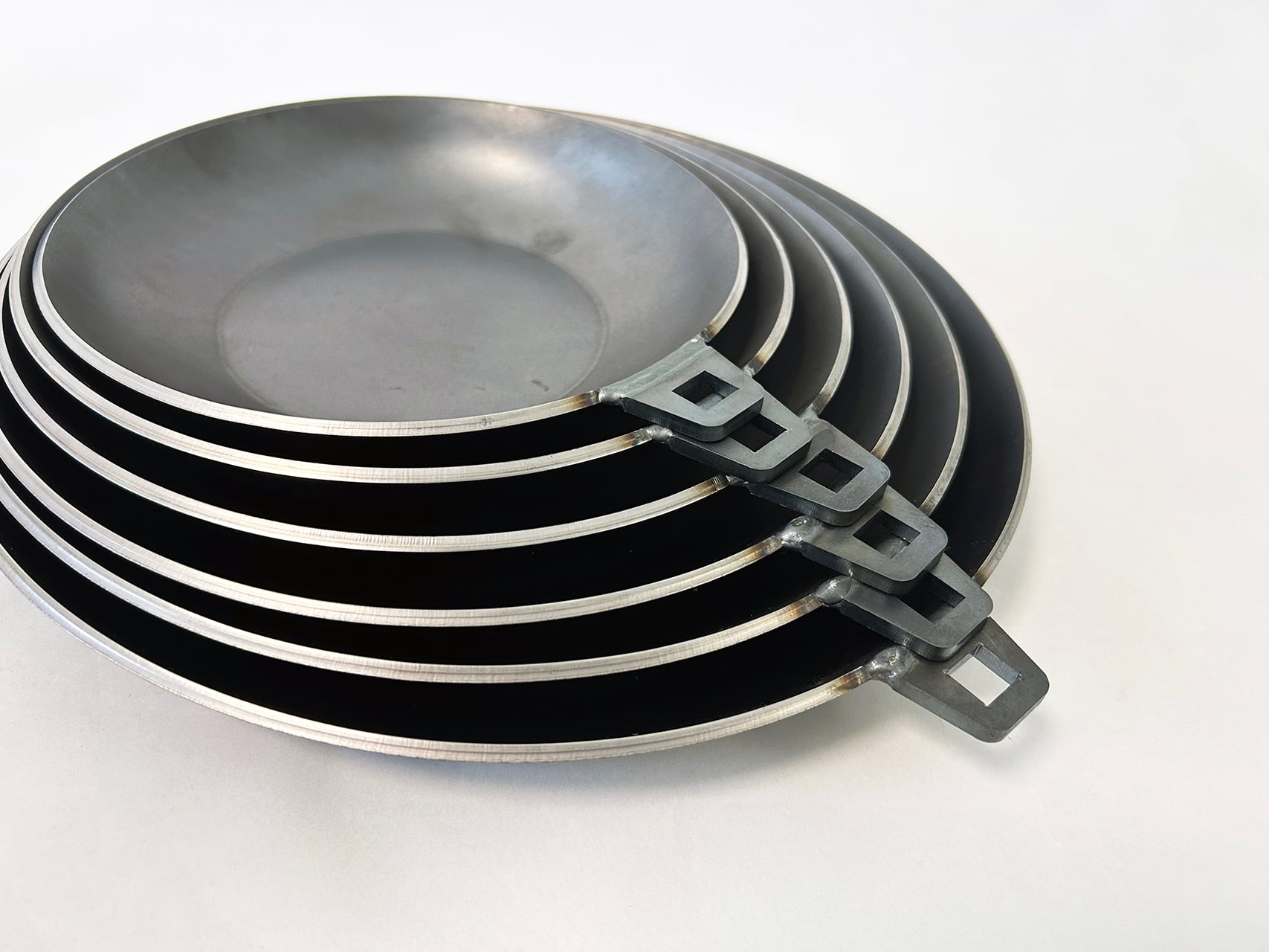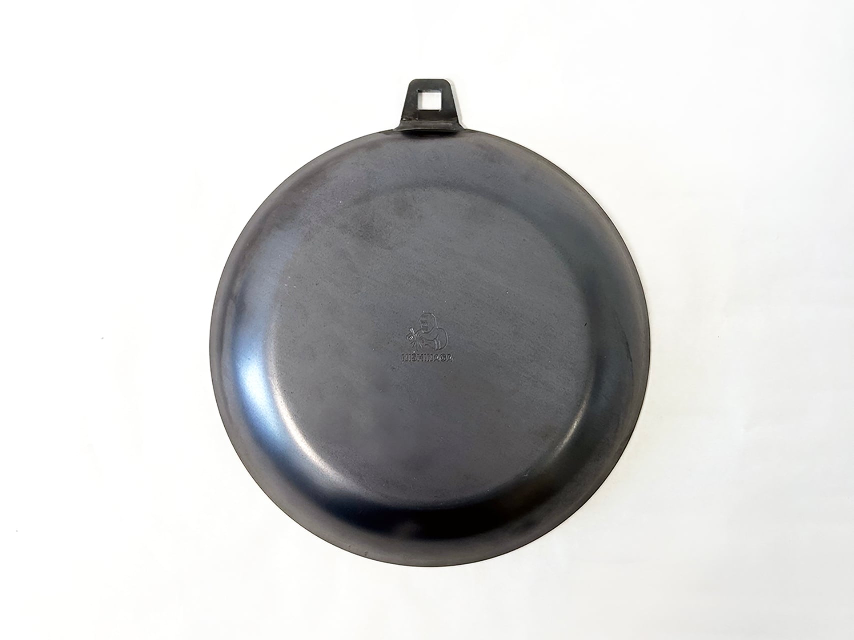 熱伝導と放熱性に加え蓄熱性という相反する要素を併せ持つ黒皮鉄という素材の魅力を活用し、焼きに特化した黒皮鉄フライパン。